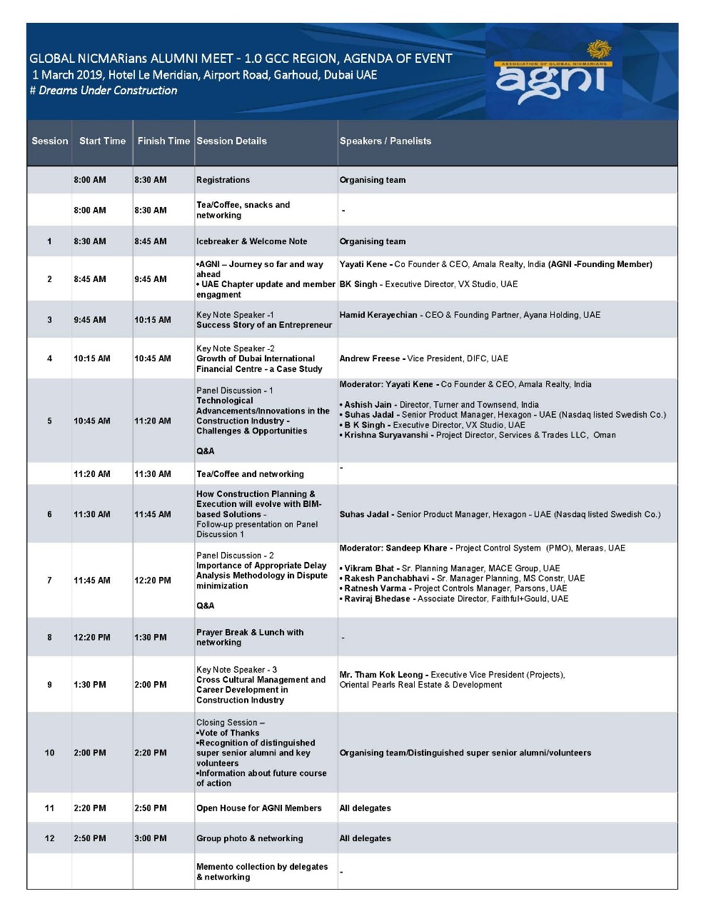 Global NICMARians Alumni Event inviting NICMARIANs in GCC Region as well as other regions to network and synergize the potential of NICMARians. This Meet will witness sessions & talks from Leaders in Construction & related Industry